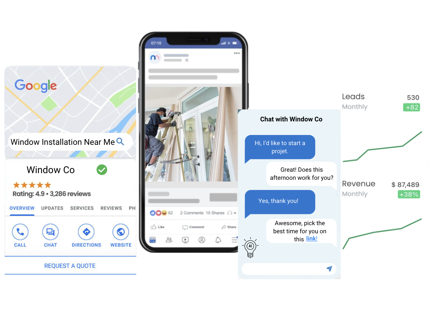 Manage your business’ reputation on Google and Facebook by sending review requests, custom automatic responses to reviews, and disputing false bad reviews.